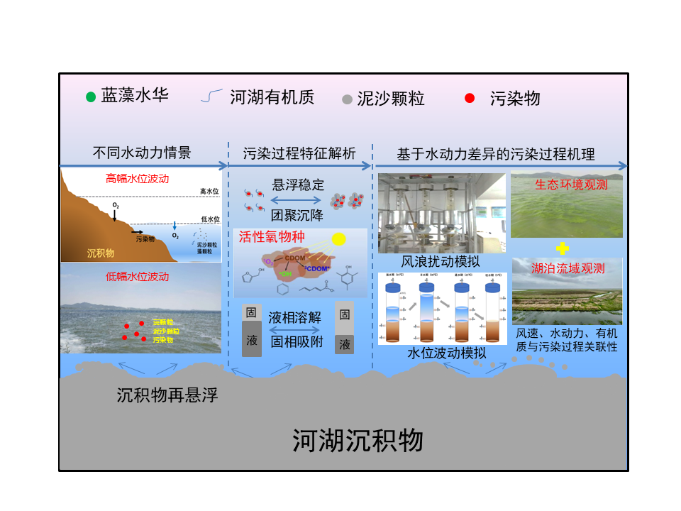 · 湖泊界面物质行为、效应、及致污控污机制:研发微界面过程可视化与调控方法,分析湖泊系统营养盐和污染物生物地球化学循环特征,研究营养盐及污染物质在湖泊多界面的迁移、转化以及归驱机制,探讨界面污染物质交换对湖泊富营养化及水生态环境效应,研发湖泊复合污染的界面防控方法。