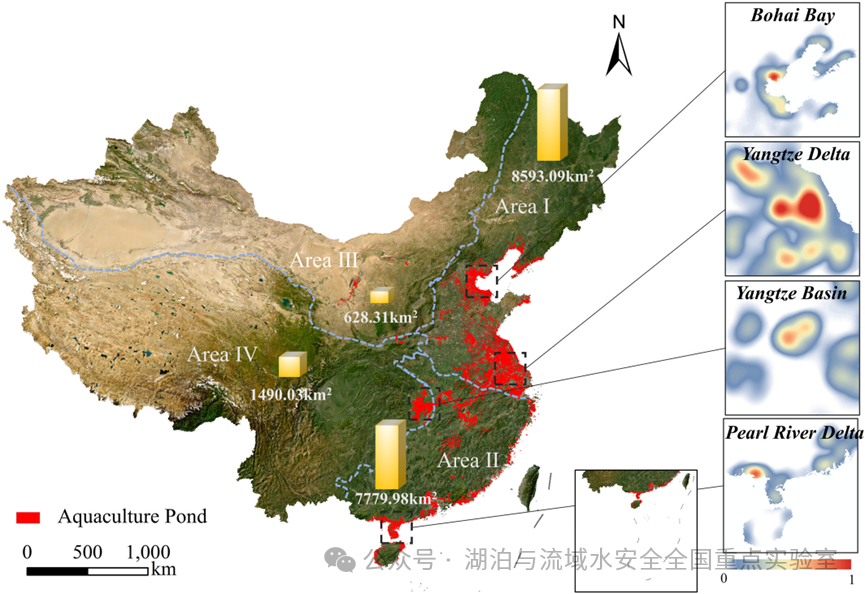 主要研究结果如下:(1)我国养殖池塘在空间上高度集中于沿海地区及长江、黄河流域,整体呈现“东部多、西部少,北部密、南部疏”的分布特征;(2)识别出四个水产养殖核心区,包括渤海湾、长三角与珠三角等三个沿海热点区,以及一个长江中下游内陆热点区;(3)我国养殖池塘面积表现出明显的区域差异,呈现“北大南小、东密西疏”的空间格局。此外,内陆养殖池塘面积呈增长趋势,并具有显著的空间集聚特征,建议今后加强内陆水域养殖监测与研究。