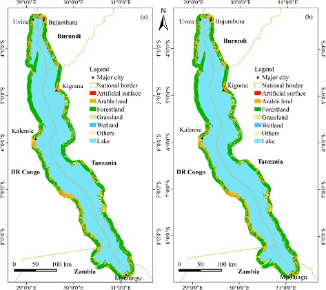 热带地区在人口增长压力下的土地利用变化引起了广泛关注。本研究选择聚落较多的河岸带为研究对象,探讨欠发达的坦噶尼喀湖地区土地利用时空特征。采用的研究方法主要包括土地利用转移矩阵、核密度估算、ArcGIS软件的网格和缓冲区分析以及遥感图像处理。土地利用变化主要体现在不同土地类型之间的转换,其中林地向耕地的转换是主要事件。虽然整个区域的土地利用变化率并不显著,但城镇周围特别是北部地区的土地利用变化率显著。研究发现,主要城镇的农业腹地由一个宽约6 km的耕地圈和40%以上的耕地密度构成。利用森林转型理论分析了土地利用变化趋势及其影响因素。研究结果对类似河岸带的土地利用模拟和规划具有一定的参考价值。为了更好地理解土地利用变化的动态,未来还需要在广泛的时空尺度上进行进一步深入的研究。