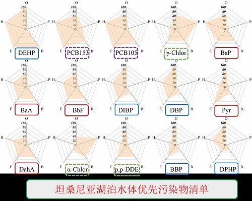 坦桑尼亚湖泊水环境4大类PTOS污染物中酞酸酯类(PAEs)污染最值得重视,溯源分析表明邻苯二甲酸酯(PAEs)、PAHs、HCHs和Methoxychlor存在明显的流域输入特征。在前述结果基础上,论文提出了一种基于污染物实测含量、化合物固有属性(亲脂疏水性、结构活性关系)以及湖泊生态风险和健康风险的多指标综合评分法,据此构建了坦桑尼亚湖泊水环境优控清单(8种PAEs、6种PAHs、7种OCPs和5种PCBs),并提出了饮用水安全和生态系统健康需重点关注的优先污染物为PAEs类化合物。