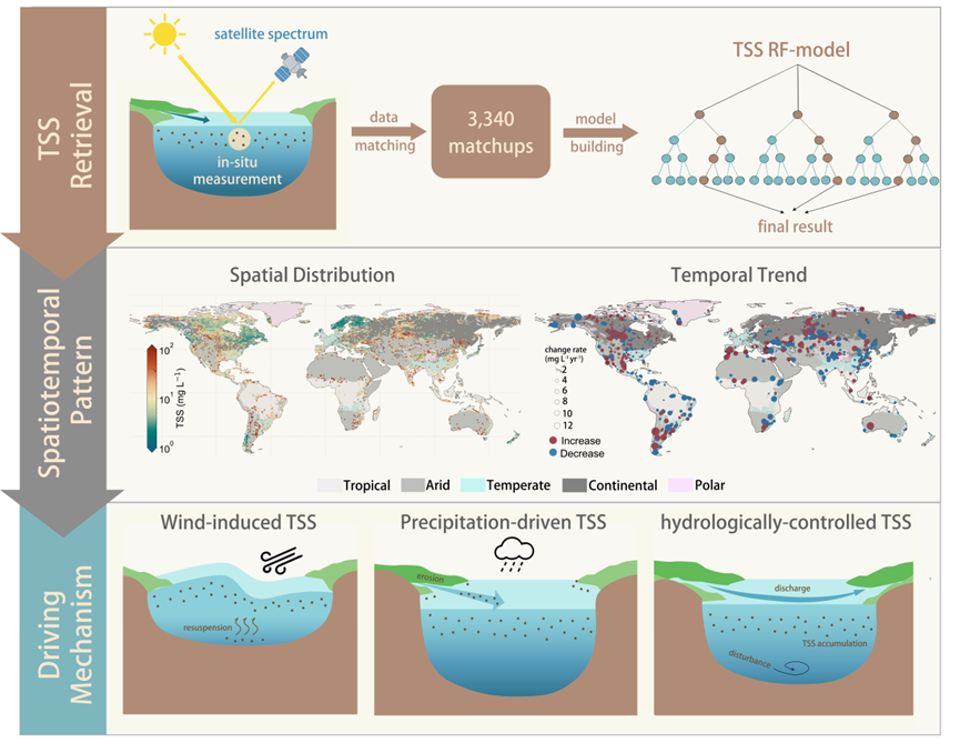 ·研究室代表性成果六:基于卫星遥感揭示了全球湖泊悬浮颗粒物时空变化规律及机制