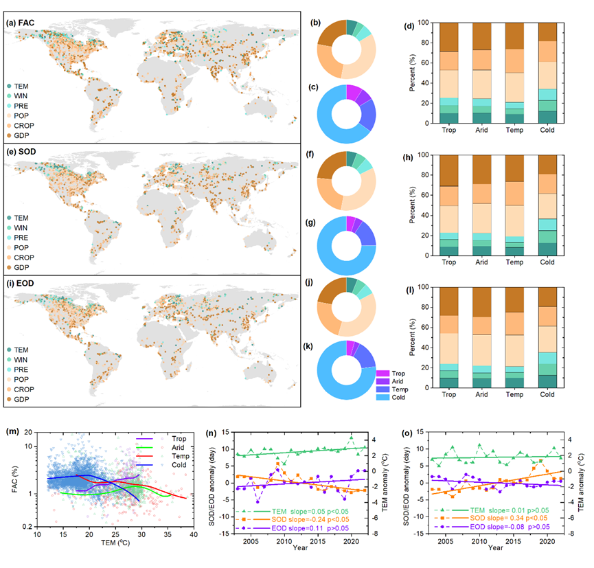 图3. 全球湖泊藻华强度与物候的驱动因素