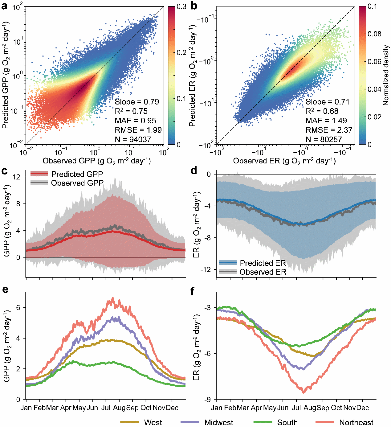 图1. 美国河流新陈代谢动态特征