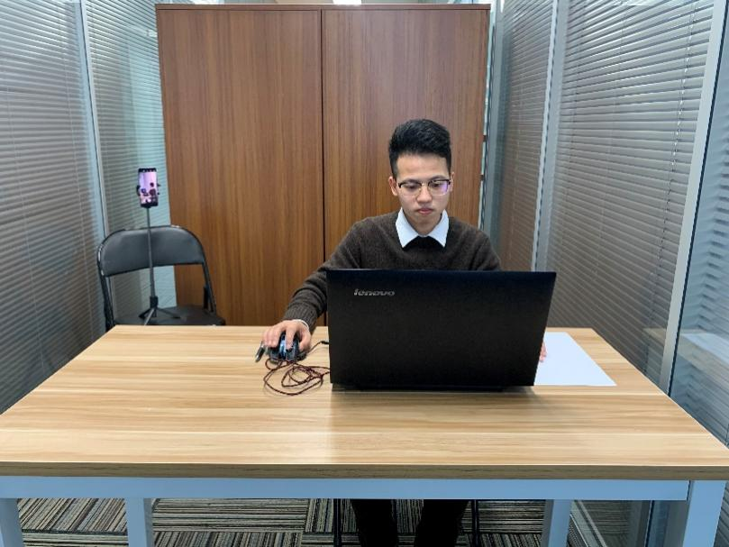 (3)考试开始前,考生需要先登录移动端“智考通”,用前置摄像头360度环绕拍摄考试环境,随后将移动设备固定在能够拍摄到考生桌面、考生电脑屏幕内容、周围环境及考生行为的位置上继续拍摄(详见说明书中《智考通操作手册》《智考云在线考试规范》)。
